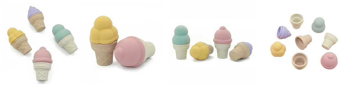 【Ice Cream Beach Toys Set】4 pcs set silicone ice cream sand molds, Drains sand and water easily.